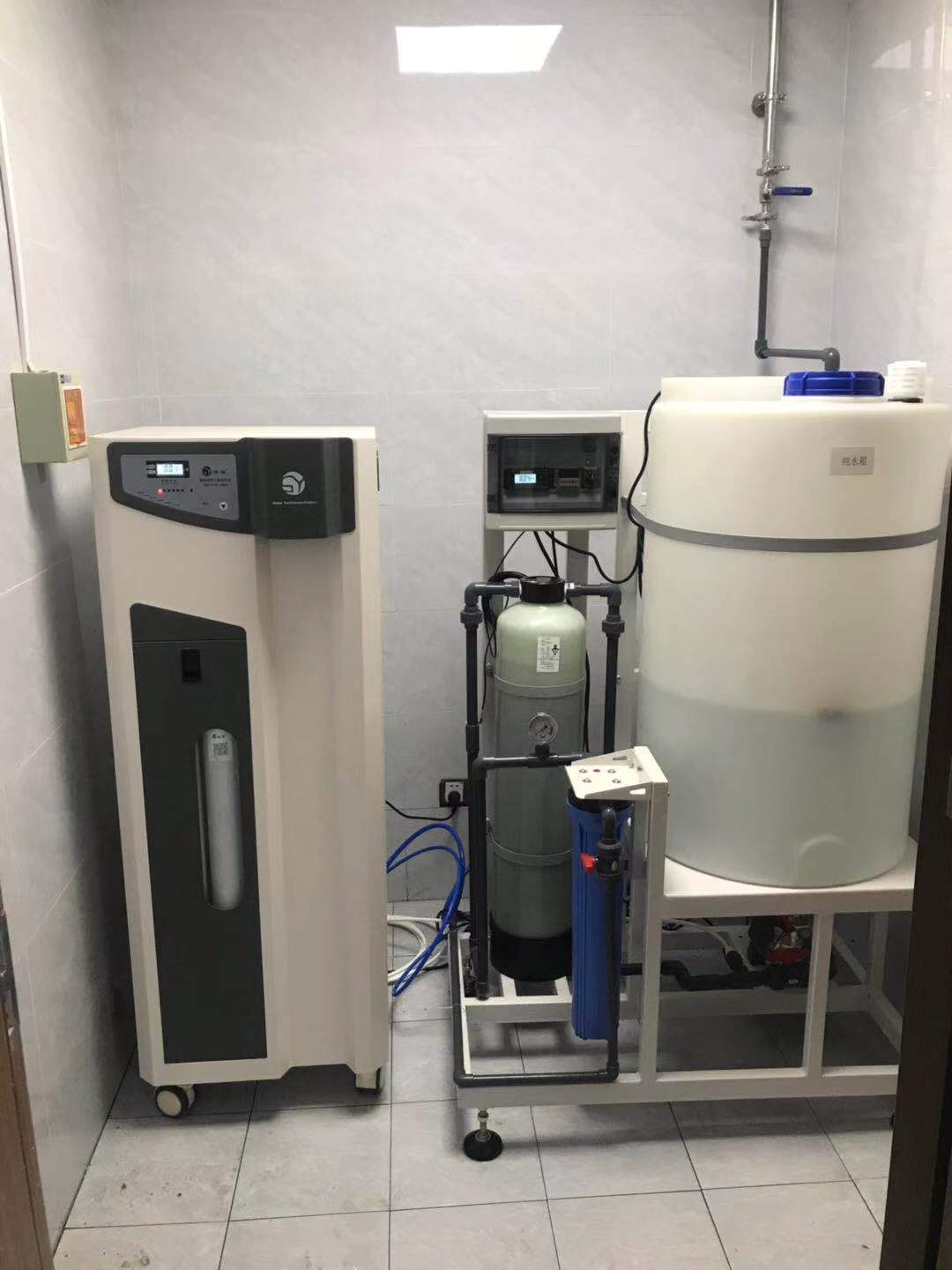 1.水质预处理阶段采用四级预处理,能有效的去除水中的电解质、颗粒、有机物、微生物;