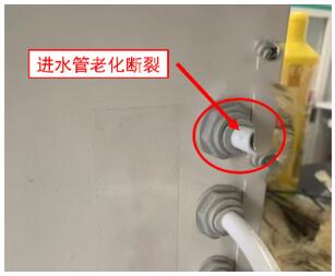 ① 纯水机进水管与水龙头连接,其内部一直承受水压,时间久了管路容易老化后出现裂痕;