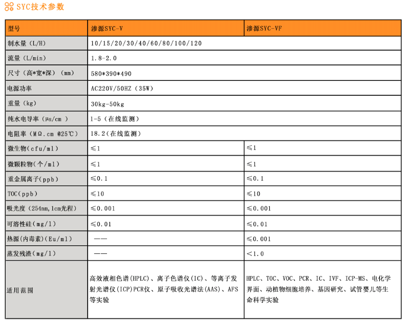 豪利777官网SYC-V系列实验室超纯水机以纯净水、蒸馏水、二级R0水为进水源,适合国内大多数实验室使用,能制取水质稳定在18.25MQ的超纯水,也可以作为中央纯水系统的超纯水终端处理设备。