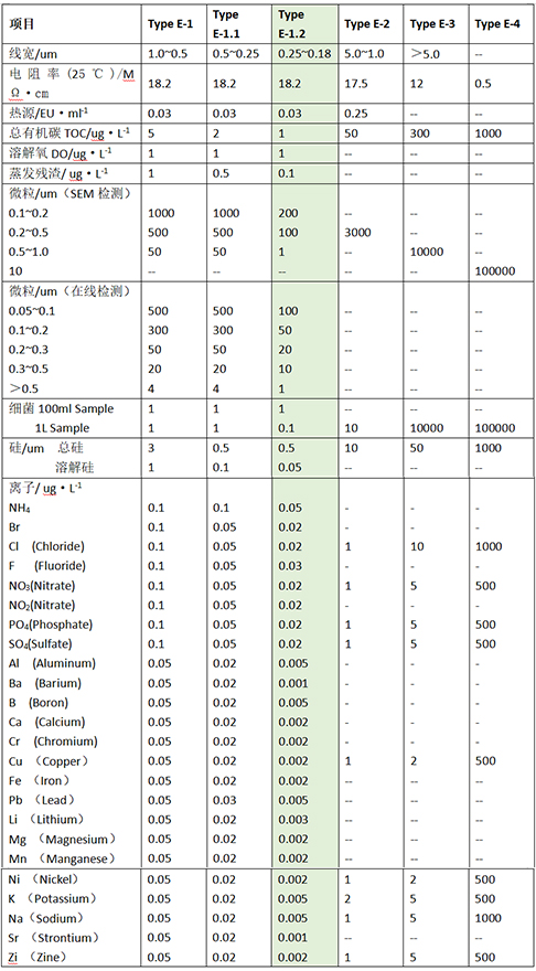 这些标准可能基于国际标准如ISO标准、ASTM标准、SEMI标准,或者国家标准如中国的GB/T 11446电子级水标准。