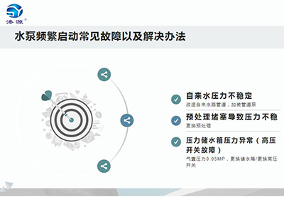 超纯水机水泵启动需要一定的进水压力,当自来水管路出现停水或者水压不足时,就会导致压力不足水泵频繁启动的现象,需要加装管道泵来增加压力。