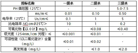 根据中国国家实验室分析用水水质标准(GB/T6682-2008)中明确指出,实验室用水中三级水PH值范围(25℃)为5.0-7.5之间,而对于纯度更高的一级水、二级水则没有设定PH值标准范围,原因是在一级水、二级水的高纯度下,很难测定其真实的PH值,故此,未对一级水、二级水的PH值范围做规定。
