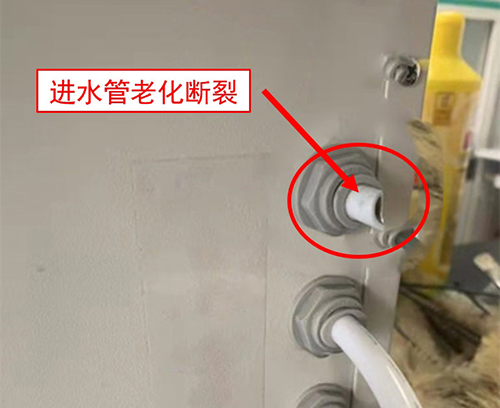 ① 纯水机进水管与水龙头连接,其内部一直承受水压,时间久了管路容易老化后出现裂痕;